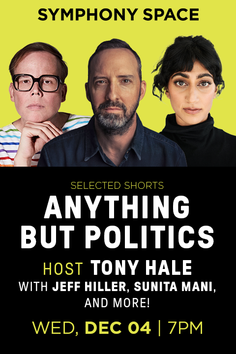 Beloved actor Tony Hale hosts an evening of hilarious stories about anything that isn't related to electoral colleges. Featuring the debut of an original story by David Sedaris, commissioned for Selected Shorts, very funny actors come together to remind us that if you laugh loud enough, you can't hear the breaking news updates on your phone. With performances by Jeff Hiller (Somebody Somewhere), Sunita Mani (GLOW), and more!